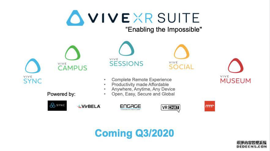 随后HTC VIVE与多领域合作伙伴共同宣布将利用HTC VIVE XR SUITE虚拟应用套装和各自的优势资源,推动“后常态”下生产生活恢复、重新提振经济。同时,也帮助企业和民众尽快适应“后常态”时代;为社会提供更丰富、更有弹性的生产、生活和沟通方式,增强人类应对突发事件的能力,解决受波及人群的痛点。
