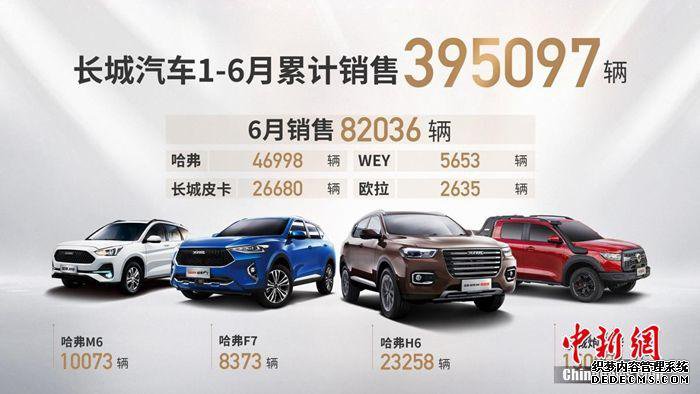 中新网7月9日电 7月8日,长城汽车发布2020年6月产销数据。6月,长城汽车销售新车82,036辆,同比增长29.6%,环比增长0.2%,再创新高。至此,长城汽车2020年1-6月累计销售新车395,097辆,连续4个月环比增长。