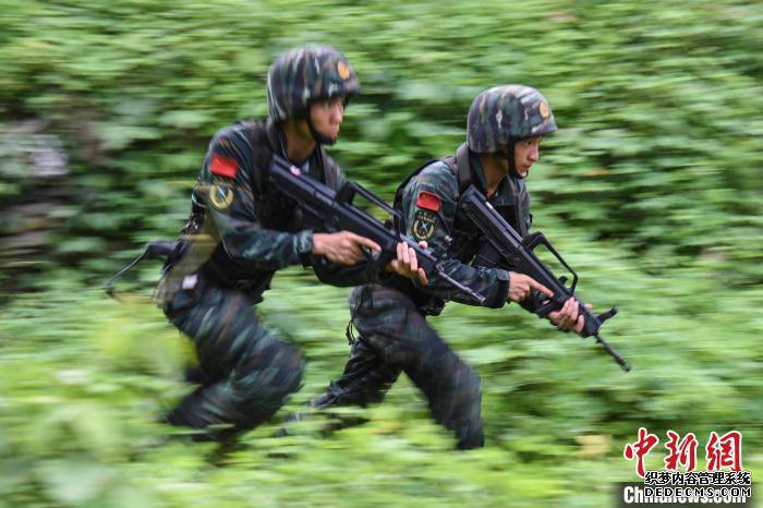 特战官兵进行山林地搜索。 石永明 摄 训练首日,该总队机动支队特战分队两百余名特战官兵围绕武装越野、按图行进、山林地搜剿战斗等课目展开激烈角逐,进一步摔打反恐作战能力。